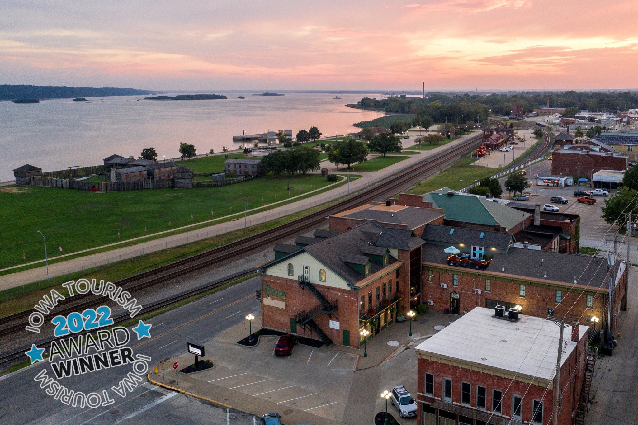 The award winning Kingsley Inn is located in downtown Ft. Madison, IA, with front row views of the Mississippi River. Across the street is the historic Old Fort Madison, the Midwest's oldest American military garrison on the upper Mississippi River. You can discover what life was like during the 1800's and learn the exciting heritage of Iowa before it was a state. The Old Santa Fe Depot Museum is also located right across the street, originally built in 1910 with renovations done in 2012 and is now home to Amtrak as of December 10, 2021. Around the corner is many local shops ranging from clothing shops, movie theater, wine & whiskey bar, record store, coffee shop and much more! Area wineries, specialty farms, golf courses and historical cemeteries are all within a short driving distance.