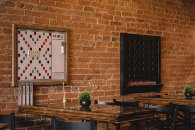 The Bar Lounge is located inside of our River Rocks Bar. This 1,435 square foot room includes Mississippi Riverfront views, all original brick walls from the 1860's. The back bar area has a bunch of wall games, pool table, darts, and all the board games you can think of!
